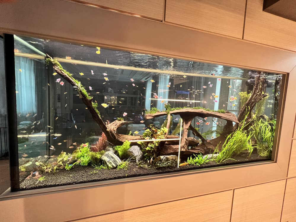 - Были заменены грунт и камни, высажены новые живые растения, а также завезены разные виды рыбок, чтобы освежить подводный мир.
