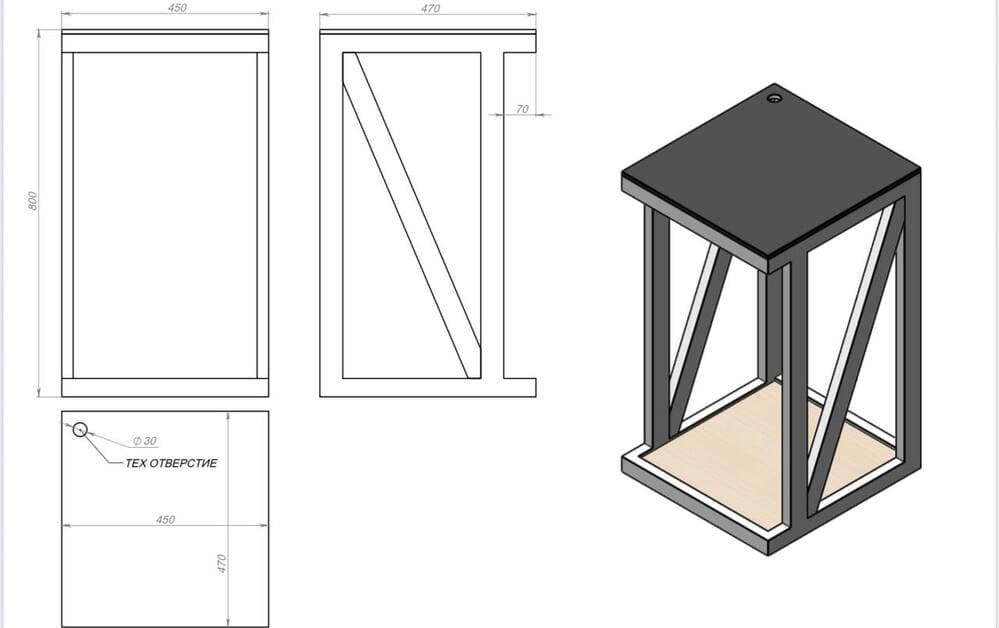 - Тумба: металлокаркас обшитый МДФ