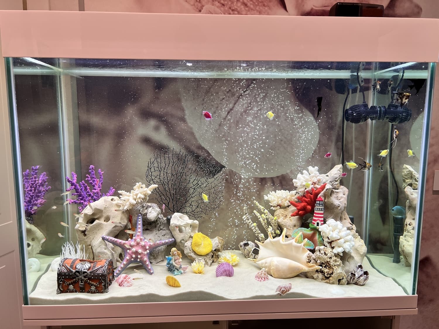 - Мы создали не просто аквариум, а развивающую среду и семейную ценность. Яркие и спокойные рыбки (тернеции), плавающие среди сказочных декораций, дарят детям чувство радости и неподдельного интереса. Для родителей же это — идеальный способ украсить интерьер.
